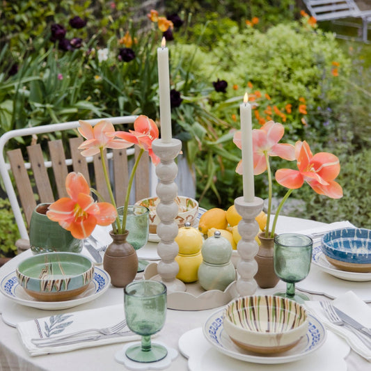 An Addison Ross exclusive design, our lacquered bobbin shaped candlesticks will look stylish in any table setting.
