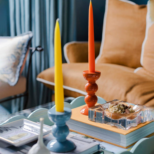 Extra Tall Orange Bobbin Candlestick - 33cm