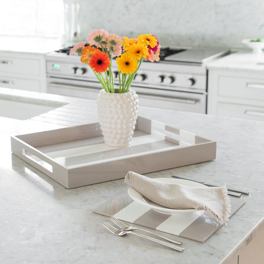 Chiffon Grey Striped Large Lacquered Ottoman Tray