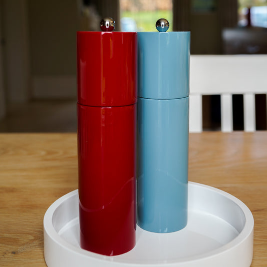 Sleek and Stylish our column and pillar salt & pepper mills are available 4 colours of hand polished lacquer.