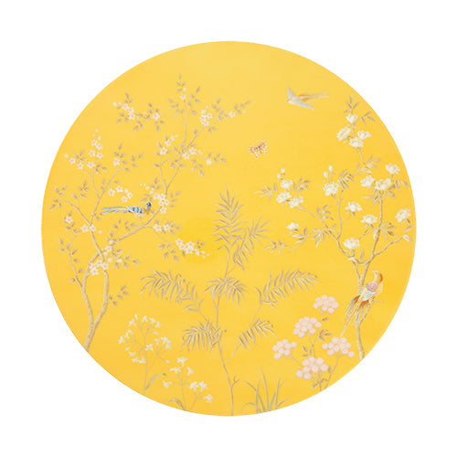 Exclusively designed by Sarah & David Ross, our yellow Chinoiserie Lacquered Placemats are finished with 20 coats of high glass lacquer, hand polished between each coat. Measuring 15x15 inches, beautifully gift boxed set of 4. Keep out of direct sunlight.