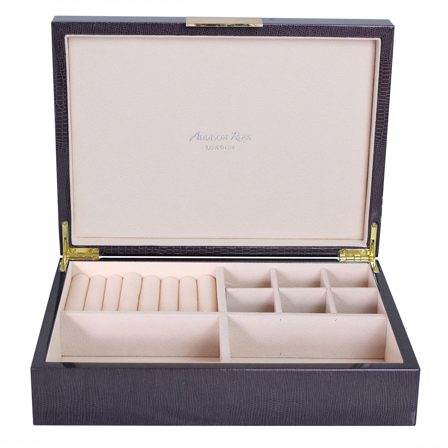 Large Brown Croc Jewellery Box with Gold