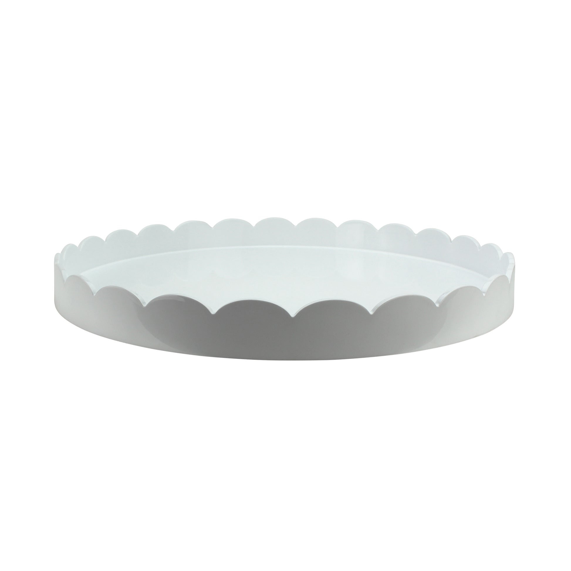 Our large round white scalloped tray is finished with 20 coats of high gloss lacquer, hand polished between each coat, this lovely tray is.